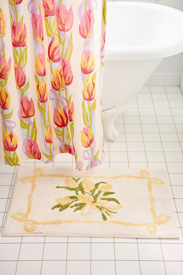 Add the cushiest layer to your flooring with this tufted bath rug featuring a bouquet of tulips at the center of the mat. Available exclusively at Urban Outfitters.