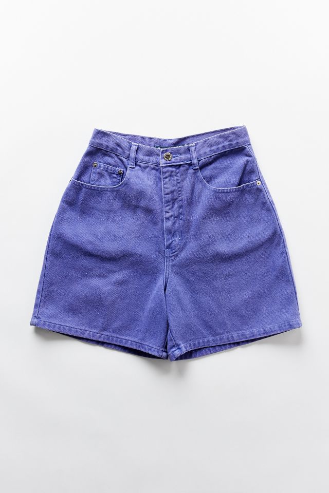 Vintage denim shorts in a bold purple hue – only one pair is available for purchase by one lucky customer, so get it or regret it! Constructed from broken-in cotton denim, these shorts offer a relaxed fit with a high waist, 5-pocket detailing and a zip-fly + button waist closure.